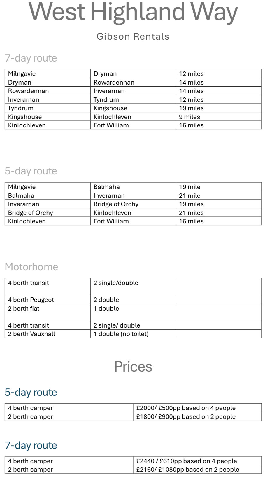 | 4 BERTH CAMPER VAN | ||||||||||||||||||||||||||||||||